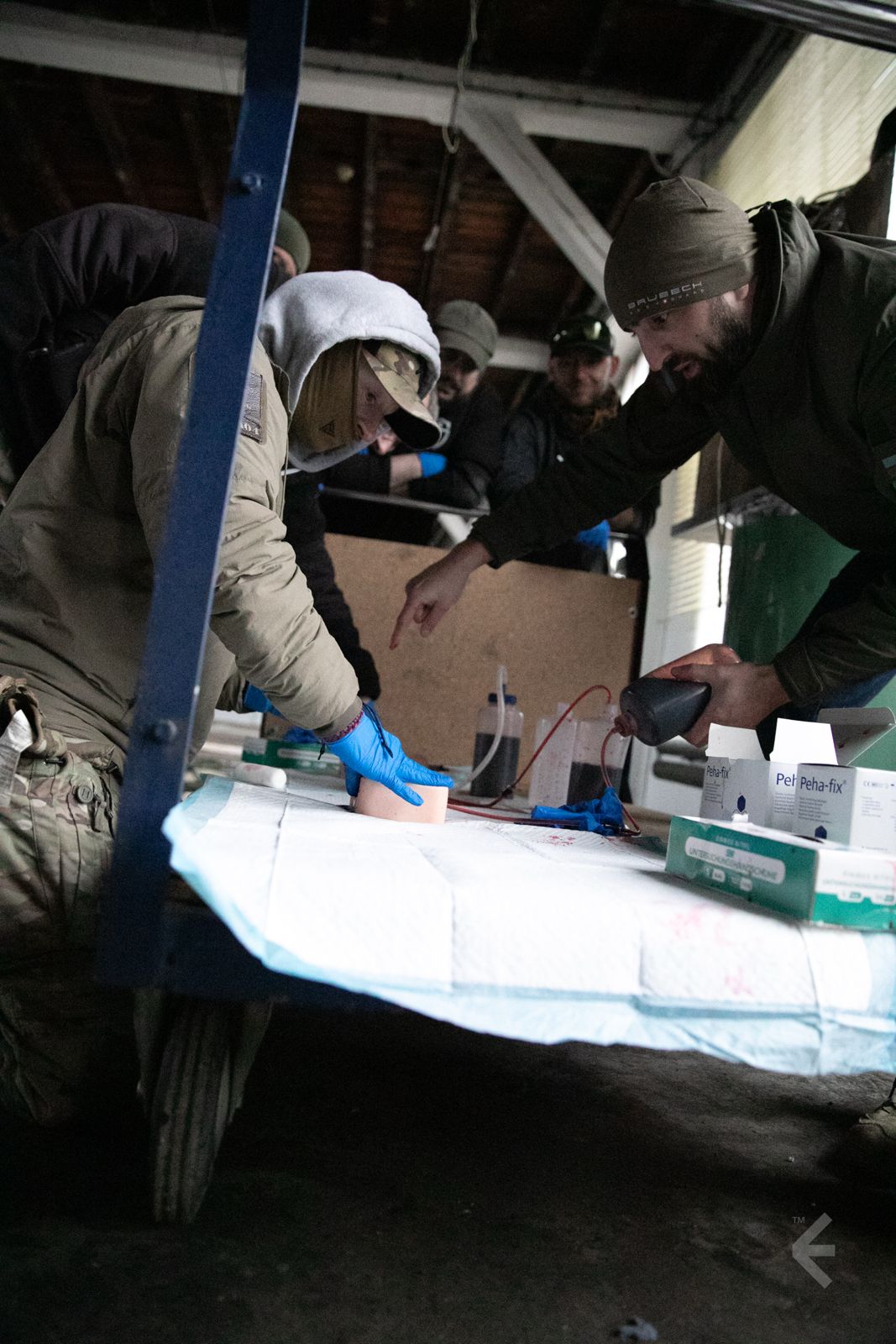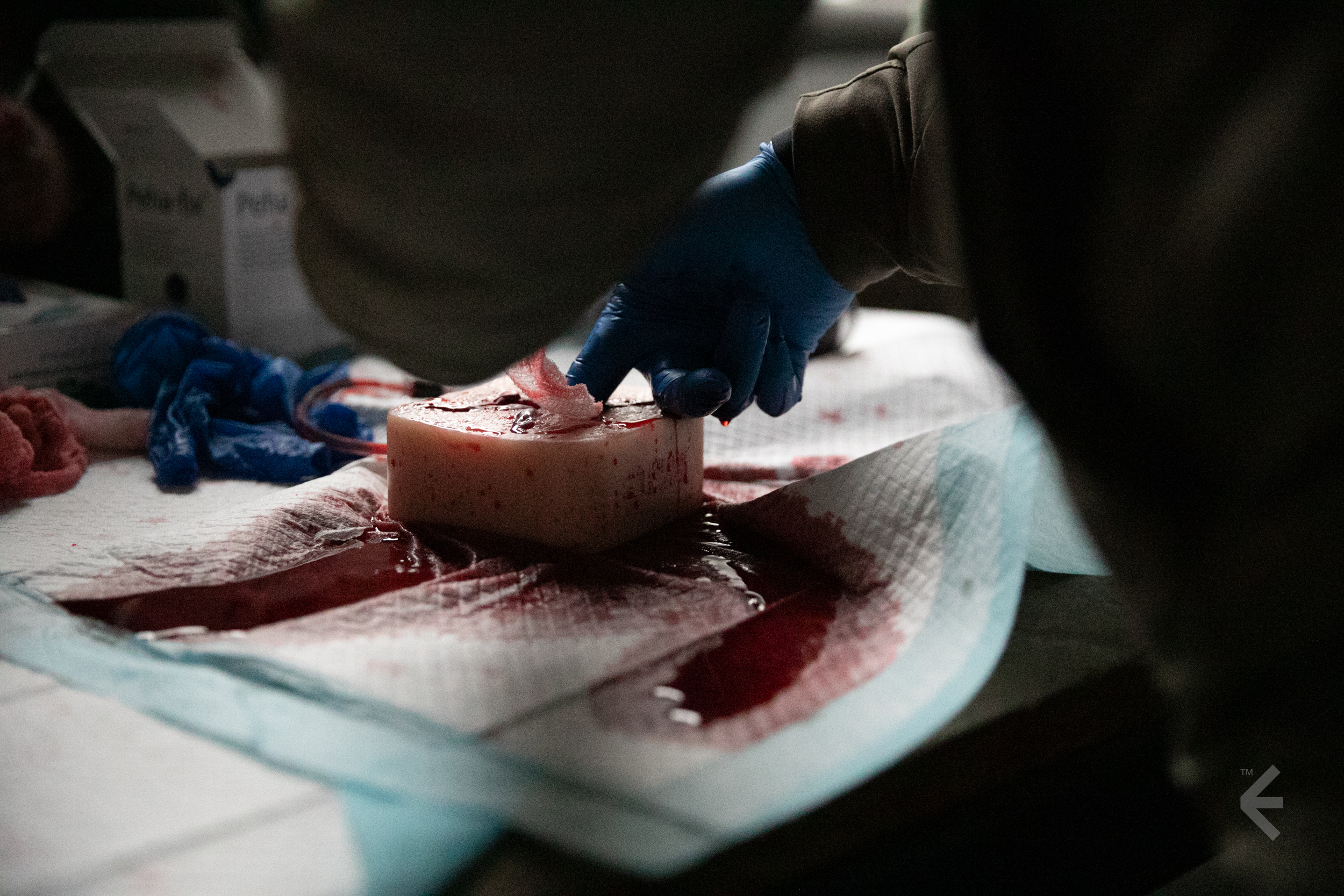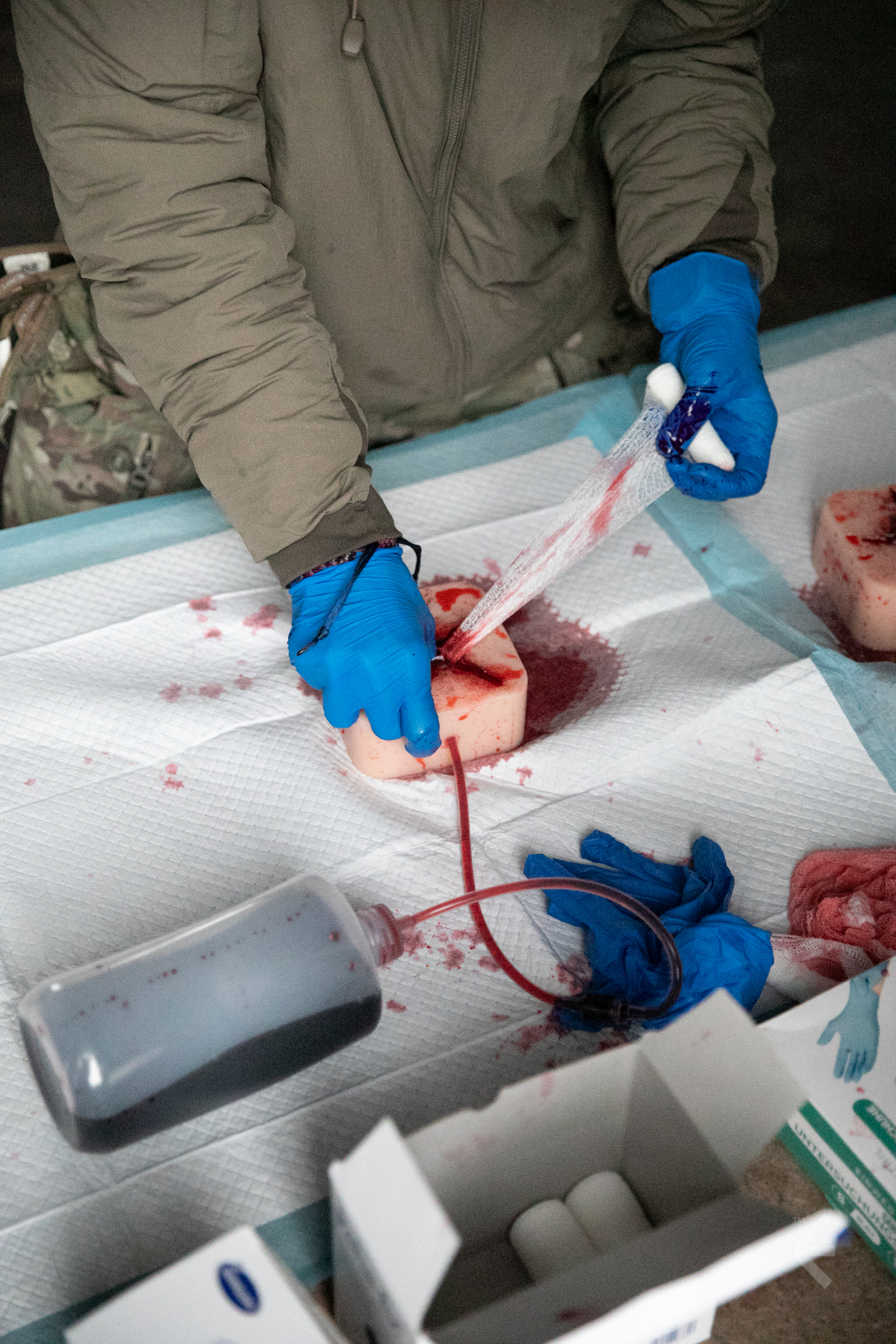 Przechodzimy do pracy na trenażerach – uczymy się tamowania ran tam, gdzie staza nie sięga.W drugim etapie opanujesz metodę „pakowania ran” (wound packing) oraz użycie opatrunków hemostatycznych i wentylacyjnych (na rany klatki piersiowej). Skupimy się na tzw. miejscach przejściowych: szyi, pachach i pachwinach. Ćwiczenia odbywają się na realistycznych trenażerach, co pozwala poczuć opór tkanki i zrozumieć mechanikę ucisku.